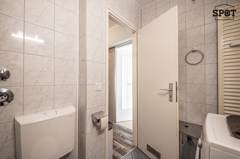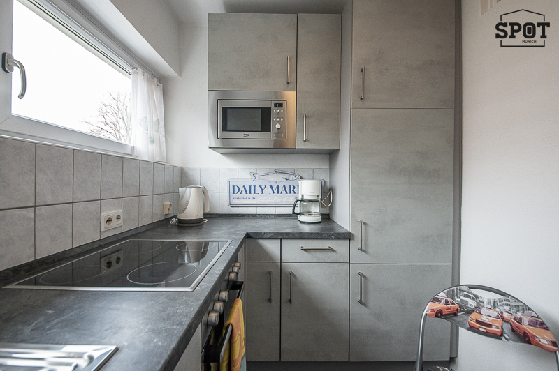 Ruhiges, freundlich möbliertes Apartment nähe Lerchenauer See. Im 2. Stock (mit Lift) eines gepflegten Mehrfamilienhauses gelegen. Der Wohn-Schlafbereich des Apartments ist mit Bettsofa, Kleiderschrank, Schreibtisch, Sessel mit Hocker, Flatscreen TV und Schuhschrank ausgestattet. Hübsche Accessoires und Bilder geben dem Apartment eine sehr angenehme Atmosphäre. Der Blick aus dem Fenster geht zum begrünten Innenhof. Die kleine separate Einbauküche mit Fenster hat alles, was man täglich benötigt, u.a. Ceranfeld, Backofen und Kühlschrank. Hier findet sich auch ein Ess-Frühstücksplatz mit 2 Stühlen. Das Bad ist zeitlos gefliest und verfügt über Badewanne, Waschbecken mit Spiegelschrank, WC und eine Waschmaschine. Im Eingangsbereich befindet sich eine praktische Nische für zusätzlichen Stauraum. Bodenbelag: Laminatboden, Fliesenboden english Quiet, nicely furnished apartment near Lerchenauer See. Located on the 2nd floor (with elevator) of a well-maintained apartment building. The living/sleeping area of the apartment is equipped with a sofa bed, wardrobe, desk, armchair with footstool, flat-screen TV, and shoe cabinet. Pretty accessories and pictures give the apartment a very pleasant atmosphere. The view from the window is of the green inner courtyard. The small separate fitted kitchen with window has everything you need for everyday use, including a ceramic hob, oven, and refrigerator. There is also a dining/breakfast area with two chairs. The bathroom has timeless tiling and is equipped with a bathtub, sink with mirror cabinet, toilet, and washing machine. There is a practical niche in the entrance area for additional storage space. Flooring: laminate flooring, tile flooring