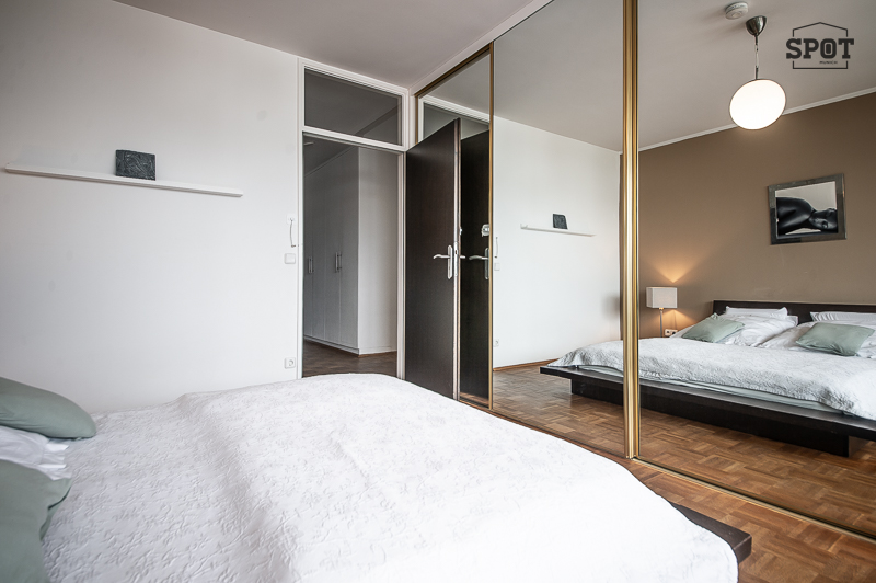 – Bedroom with double bed 1.80 x 2 m, mirrored doors, sliding wardrobe, 2 bedside tables, access to balcony 2 (west side)