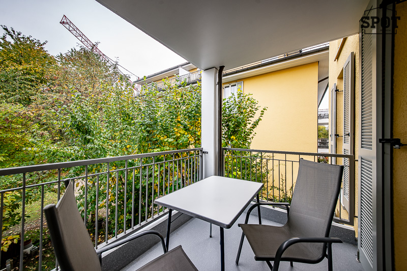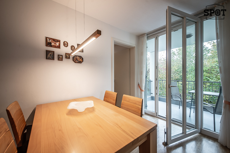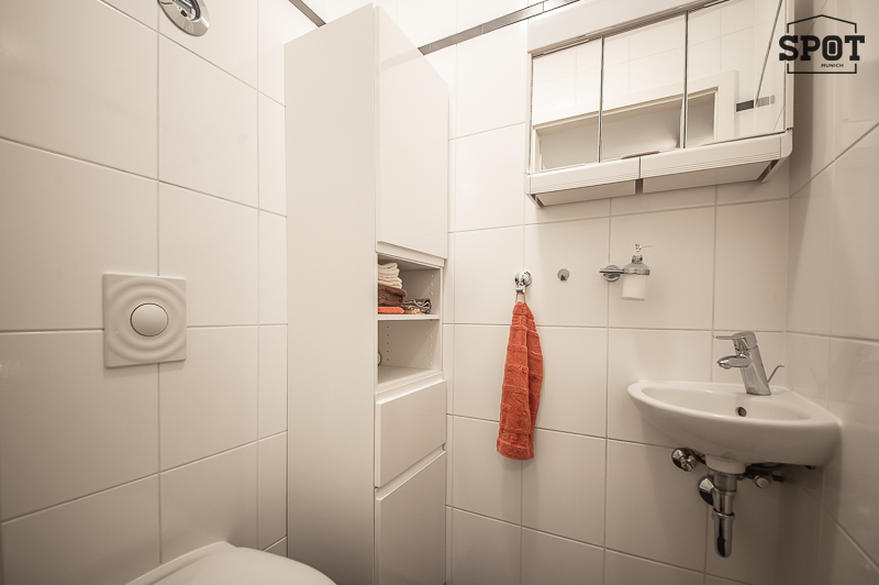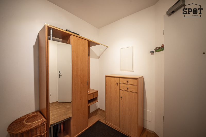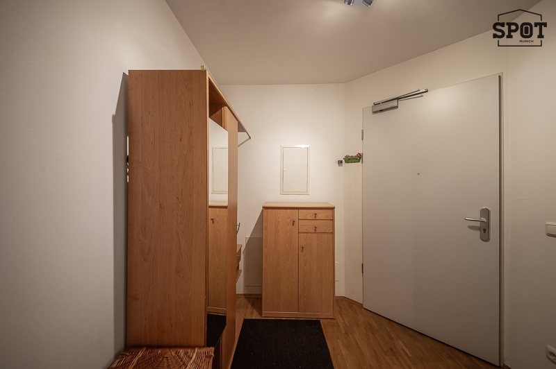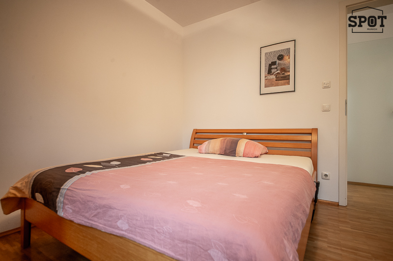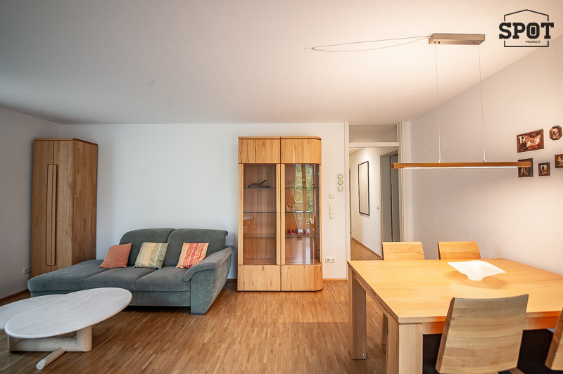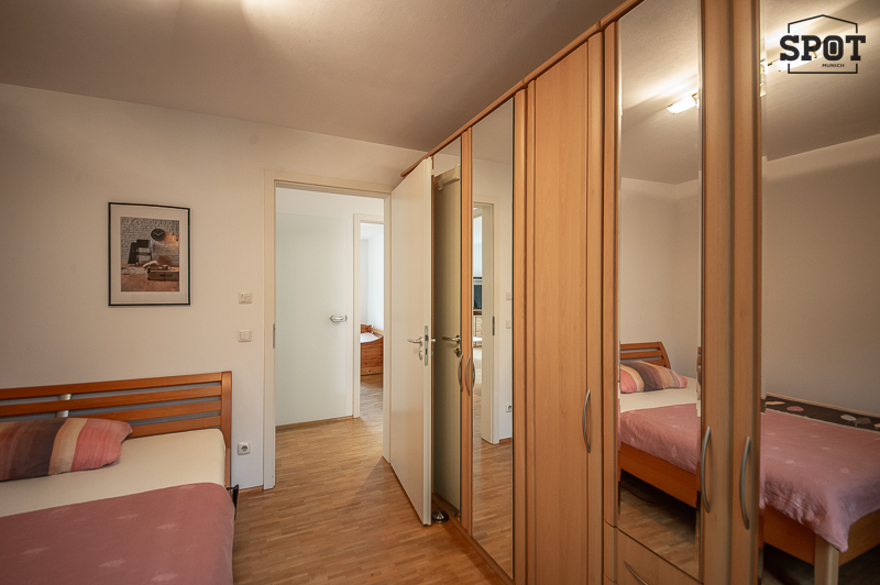 Freundliche 4 Zimmer Wohnung mit großem Balkon und drei separaten Schlafmöglichkeiten in Riem. 1. Stock mit Aufzug. Sehr gepflegtes Mehrfamilienhaus mit wenigen Wohneinheiten. Guter Grundriss, der eine optimale Aufteilung ermöglicht. Der Flur ist mit einer Garderobe mit Staumöglichkeit und einem großen Einbauschrank mit Schiebetüren ausgestattet. Von hier betritt man den hellen Wohnraum mit Zugang zum überdachten Balkon. Er ist ausgestattet mit Sofa, Couchtisch, Esstisch für 4 bis 6 Personen, Sideboard, Vitrinenschrank und Regalen, sowie Flatscreen TV. Der großzügige nahezu quadratische Balkon ist überdacht und mit Tisch und zwei Stühlen möbliert. Die separate Küche hat ein Fenster und ist sehr gut mit allem ausgestattet, was man täglich benötigt. Das Hauptschlafzimmer ist mit Doppelbett (1,60 x 2,00 m) und verfügt über einen großen Kleiderschrank und einen Arbeitsplatz. Im zweiten Zimmer steht ein Einzelbett und ein geräumiger Kleiderschrank zur Verfügung. Eine dritte separate Schlafmöglichkeit bietet das Gästezimmer. Das große Duschbad mit Fenster ist modern, mit großer Glas Eckdusche, Waschtisch mit Unterbau, Spiegelschrank und WC. Hier gibt es auch einen Anschluss für die Waschmaschine. Extra Gäst-WC vorhanden. Die Wohnung eignet sich ideal für Kollegen einer Firma. english Friendly 4-room apartment with large balcony and three separate sleeping areas in Riem. 1st floor with elevator. Very well-maintained apartment building with few residential units. Good floor plan, allowing for optimal layout. The hallway is equipped with a coat rack with storage space and a large built-in closet with sliding doors. From here, you enter the bright living room with access to the covered balcony. It is equipped with a sofa, coffee table, dining table for 4 to 6 people, sideboard, display cabinet, and shelves, as well as a flat-screen TV. The spacious, almost square balcony is covered and furnished with a table and two chairs. The separate kitchen has a window and is very well equipped with everything you need on a daily basis. The master bedroom has a double bed (1.60 x 2.00 m) and features a large wardrobe and a workspace. The second room has a single bed and a spacious wardrobe. The guest room offers a third separate sleeping option. The large shower room with window is modern, with a large glass corner shower, vanity unit, mirror cabinet, and toilet. There is also a connection for a washing machine. Extra guest toilet available. The apartment is ideal for colleagues from the same company.