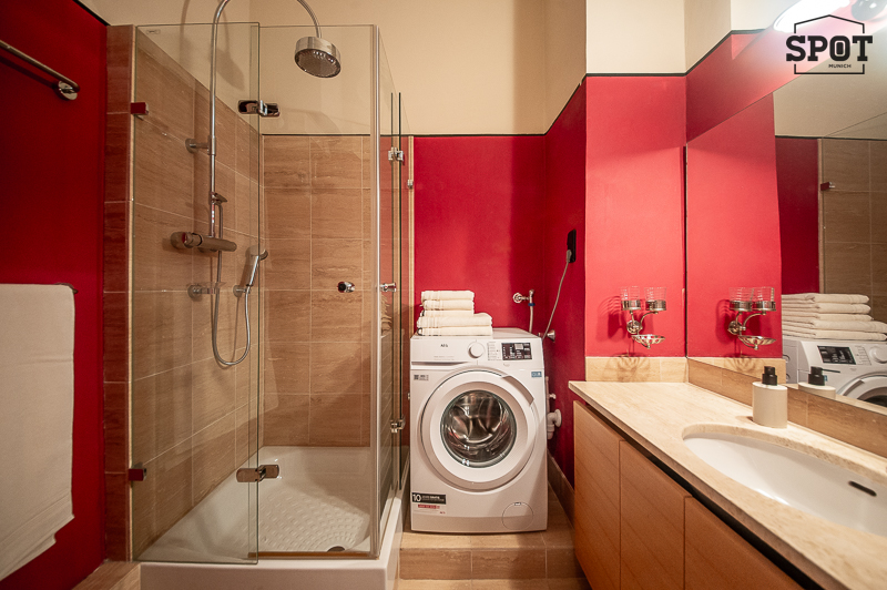 Bad 1 mit Dusche, Waschtisch, Waschmaschine-Trockner Kombination