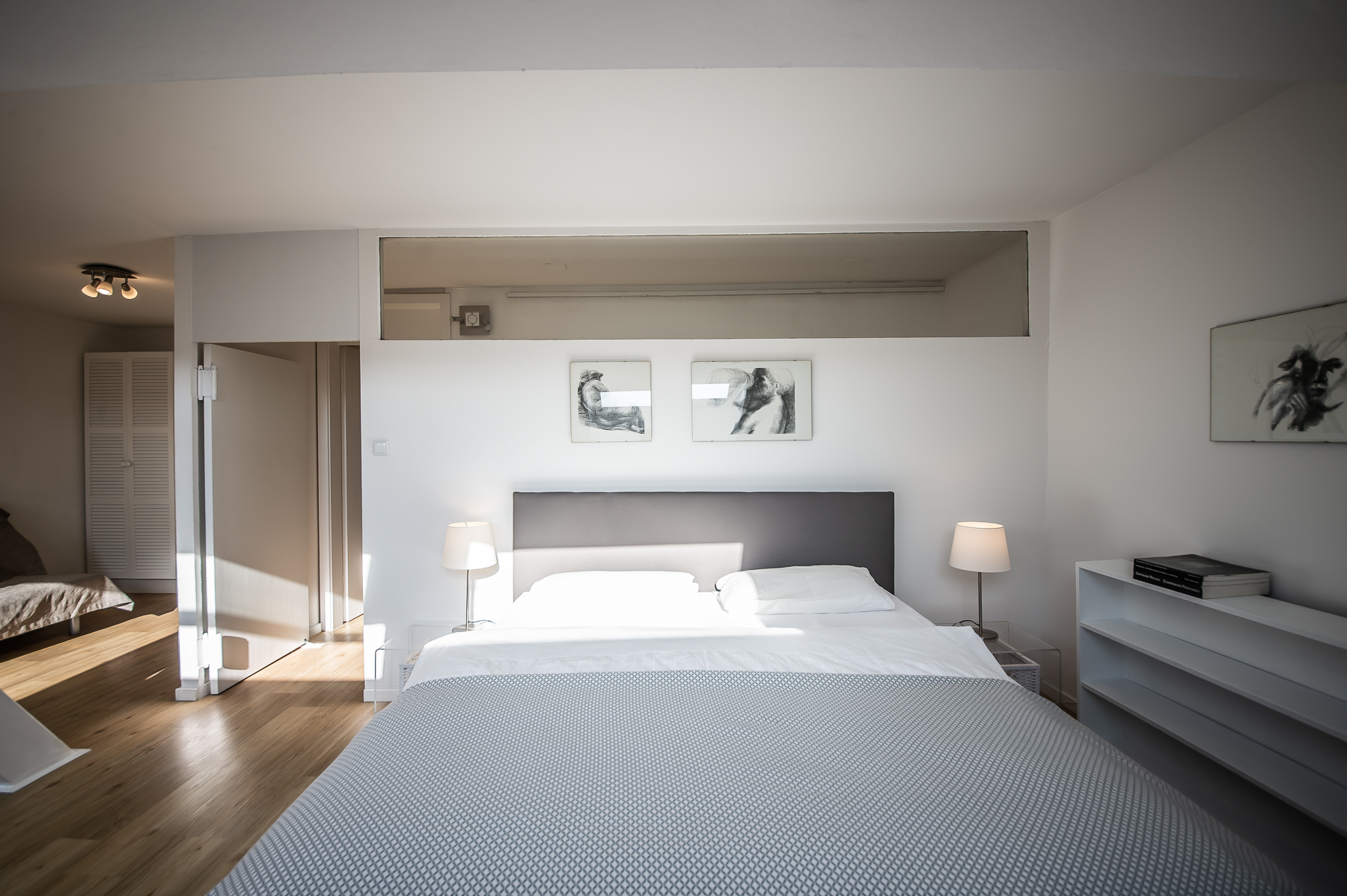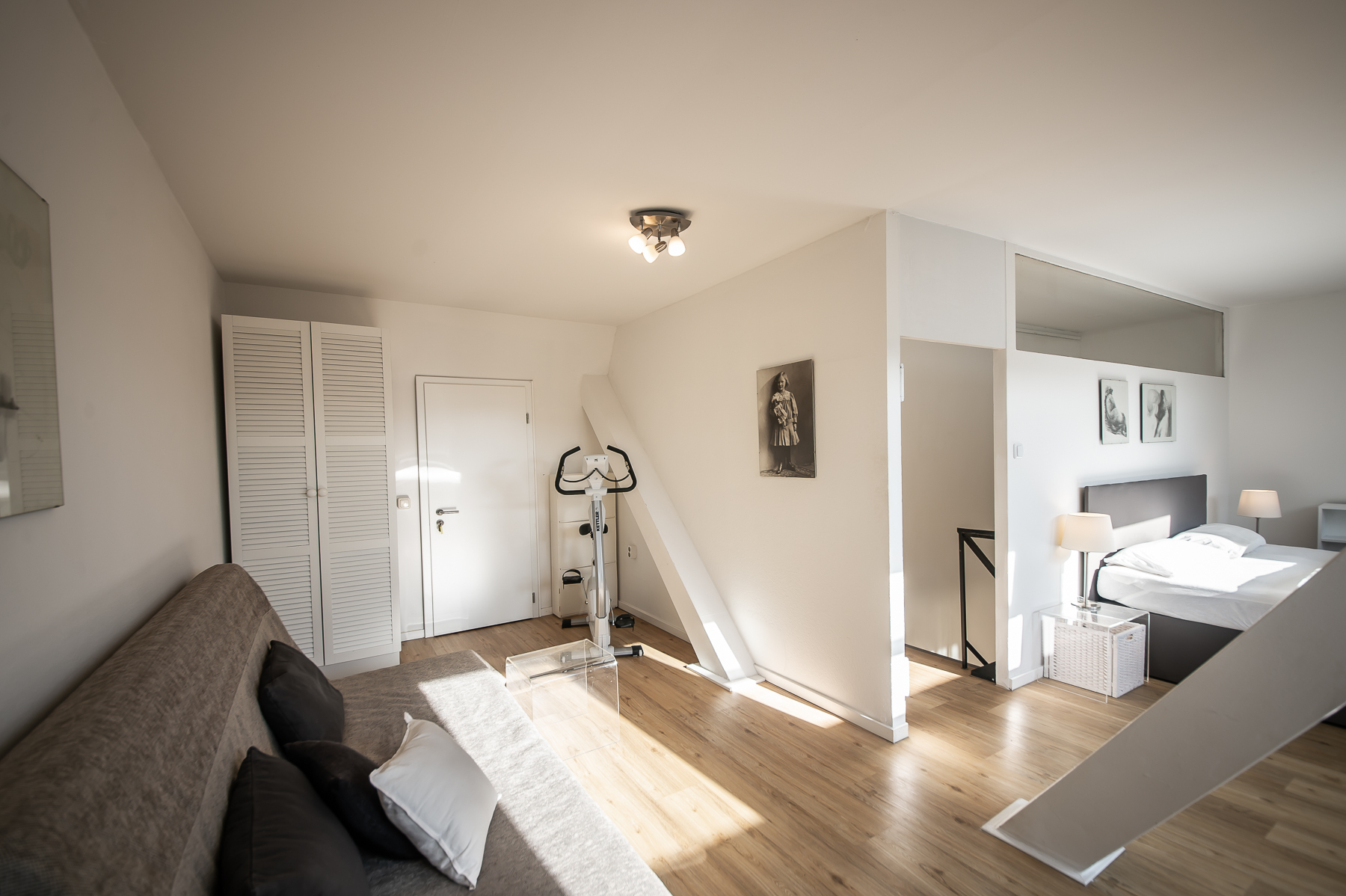 Bedroom 1 with double bed (1,80 x 2 m), sofa bed, gym equipment