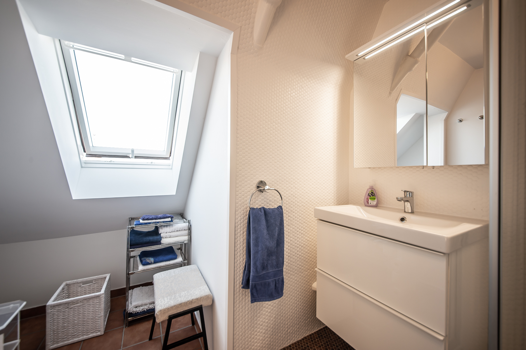 Bad 2 mit Fenster, Dusche, Waschtisch, WC