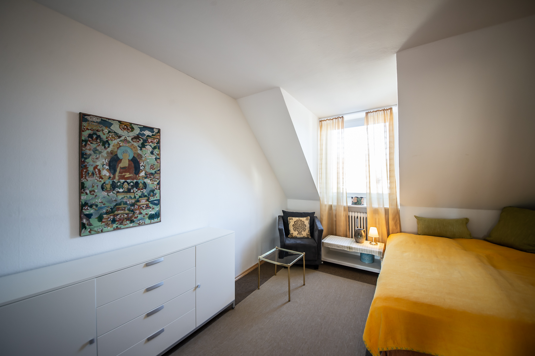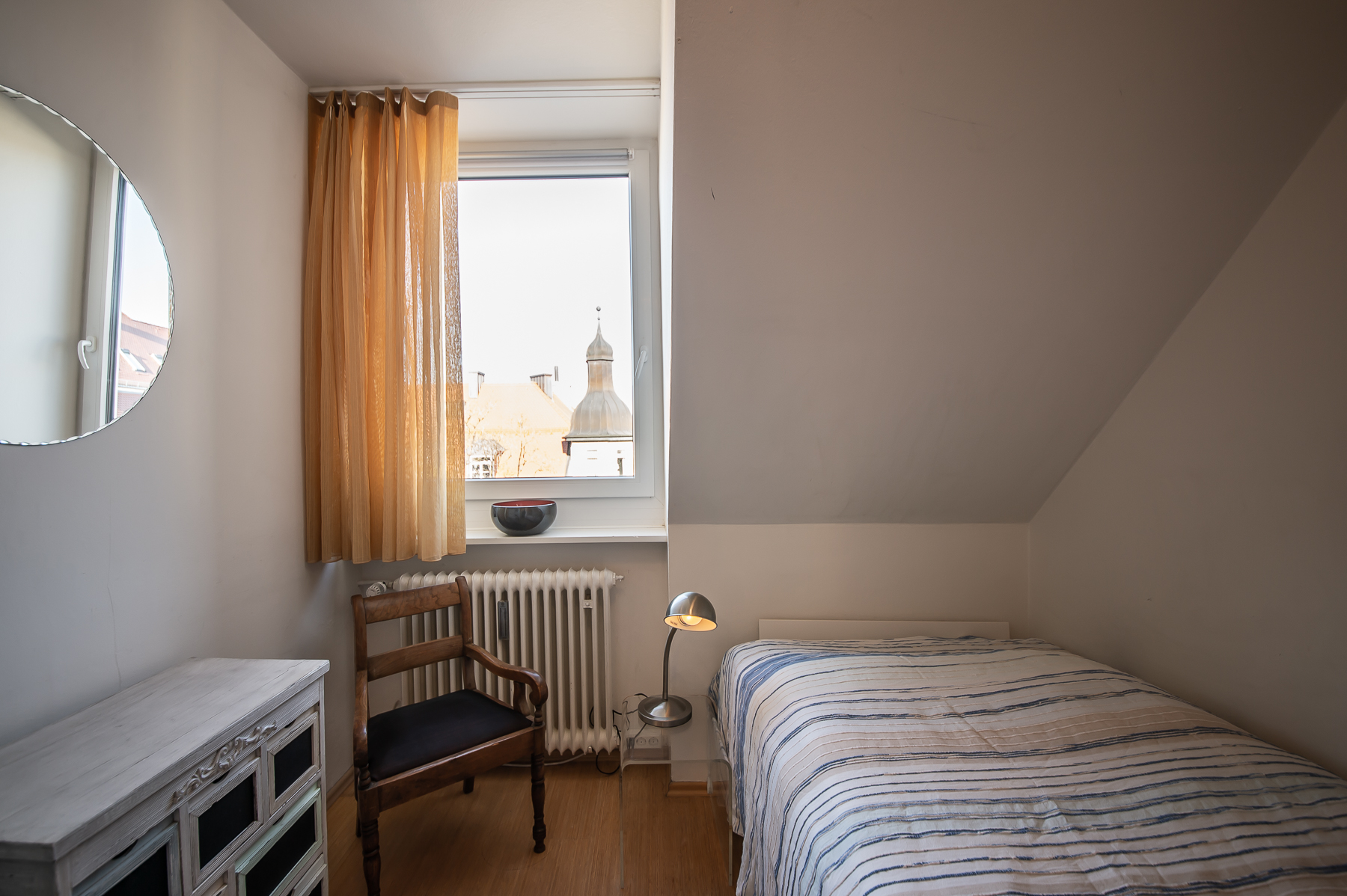 Guest room with single bed (1,00 x 2 m) and chest of drawers
