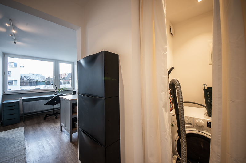 Abstellraum mit Wasch-Trockner-Kombination und Garderobe