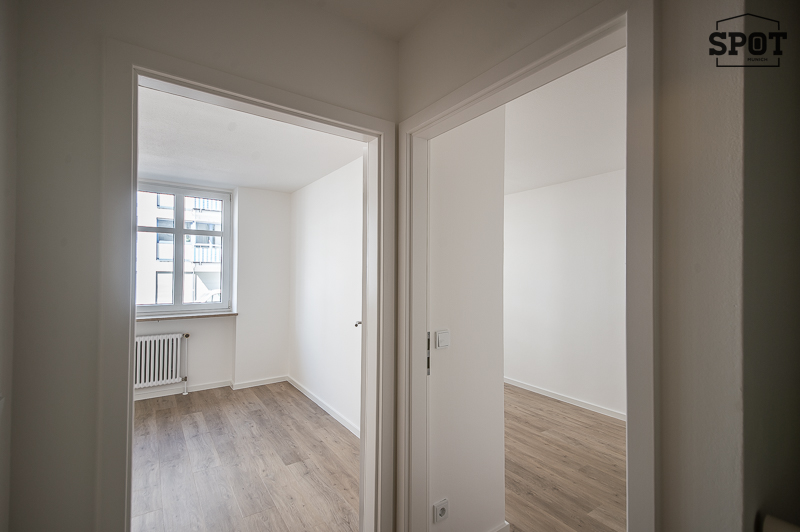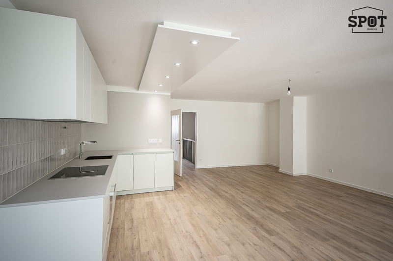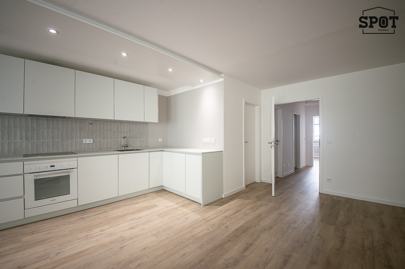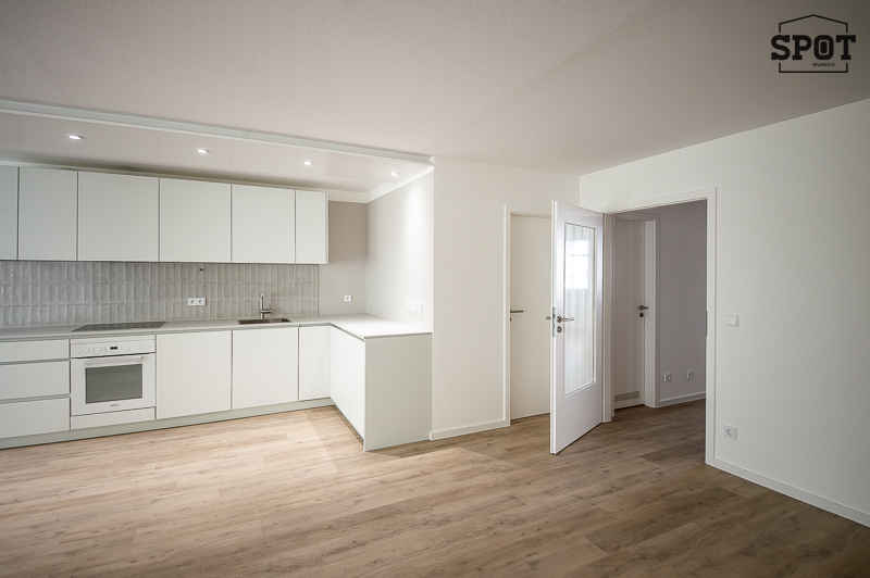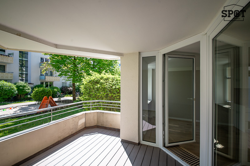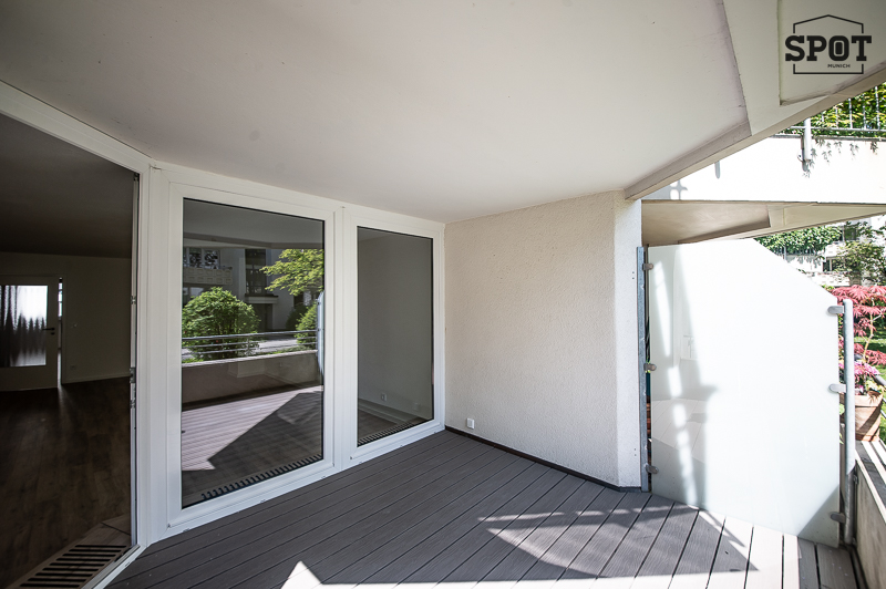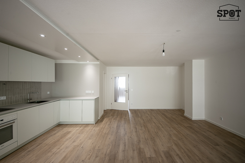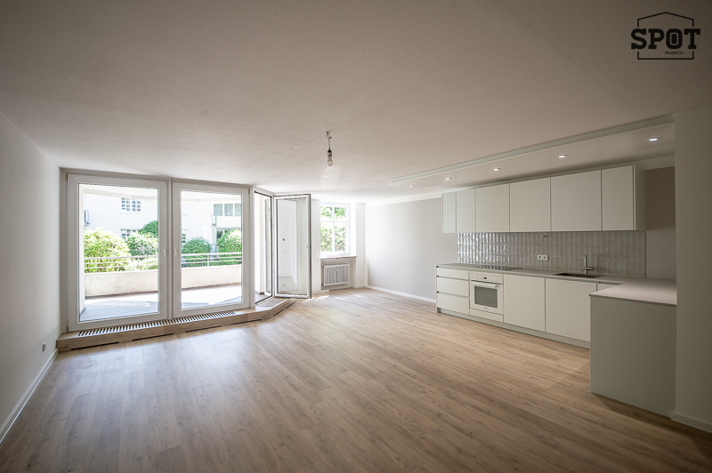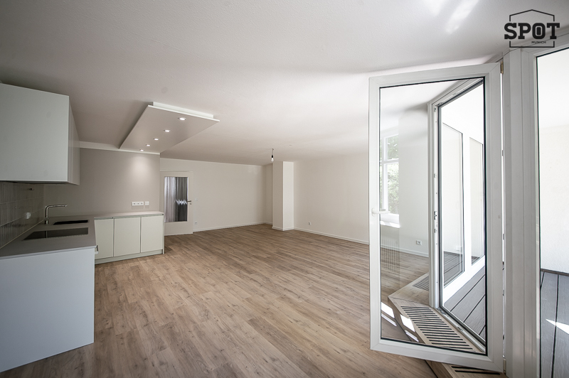 Erstbezug nach Renovierung: Attraktive 3 Zimmer Wohnung mit großer überdachter Terrasse (11,2 qm) mit Süd-Ost-Ausrichtung in Obergiesing. Die helle Wohnung befindet sich im Hochparterre eines gepflegten Wohngebäudes aus den 90er Jahren. Sie ist außergewöhnlich, aber optimal geschnitten und hat eine sehr angenehme Atmosphäre. Interessanter Eingangsbereich mit Treppe zu Wohnraum mit offener Küche und Schlafräumen sowie Badezimmer. Vom großzügigen Wohnzimmer hat man Zugang zur großen überdachten Terrasse mit Blick ins Grüne. Die weiße moderne, sehr gut ausgestattete Einbauküche ist zum Wohnraum hin offen. Die beiden weiteren Zimmer haben einen guten Grundriss und Ausrichtung nach Westen. Das Bad verfügt über eine große Glasdusche und ein Waschbecken mit Unterbau. Hier findet auch die Waschmaschine ihren Platz. Das WC mit kleinem Waschbecken ist separat. Eine Speisekammer mit zusätzlichem Stauraum komplettiert die Wohnung. Der hochwertige Bodenbelag aus Vinyl wurde in der kompletten Wohnung neu verlegt. Auch die Terrasse wurde mit neuen Dielen in Holzoptik ausgestattet.