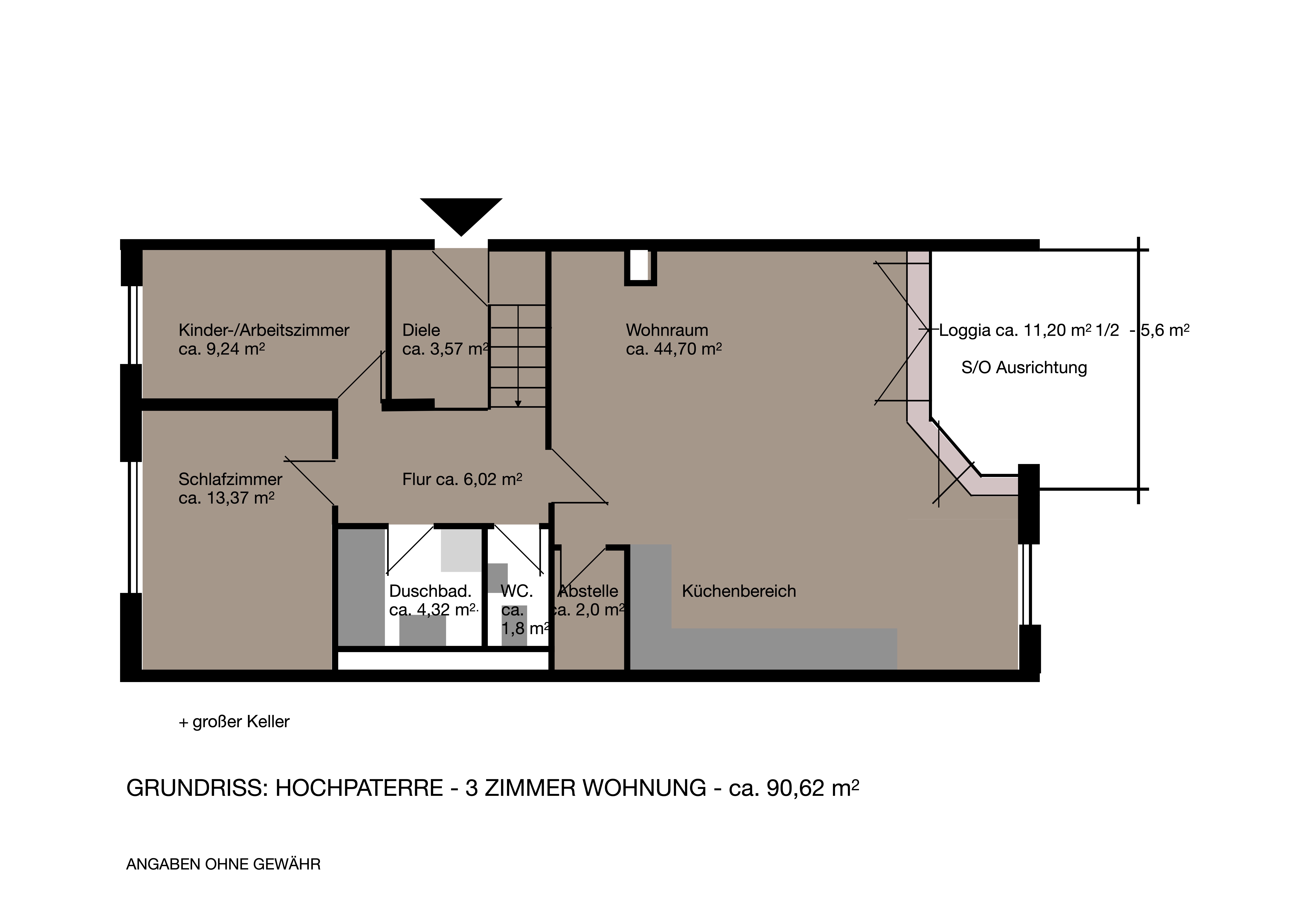 – Loggia – 11,2 qm (Hälfte 5,6 qm)