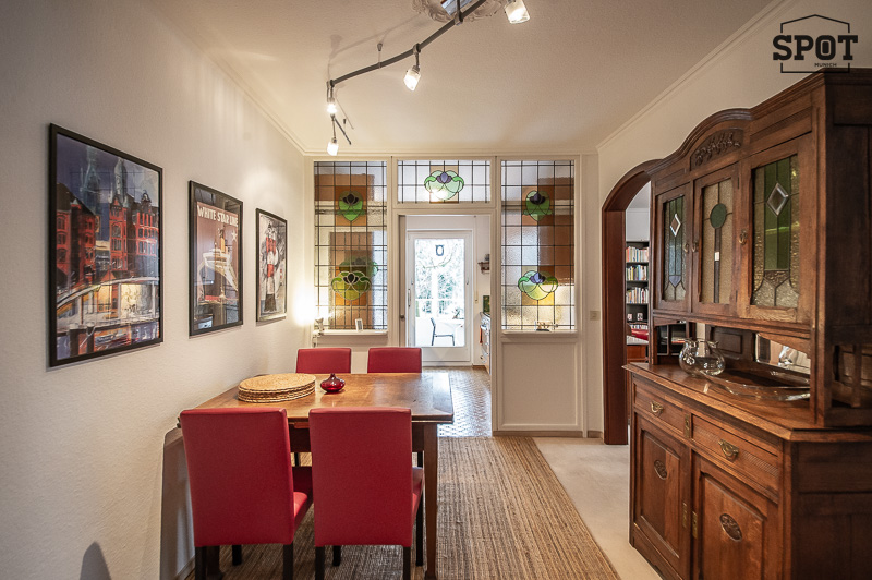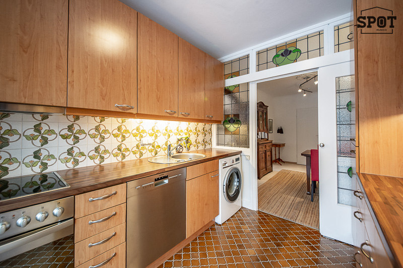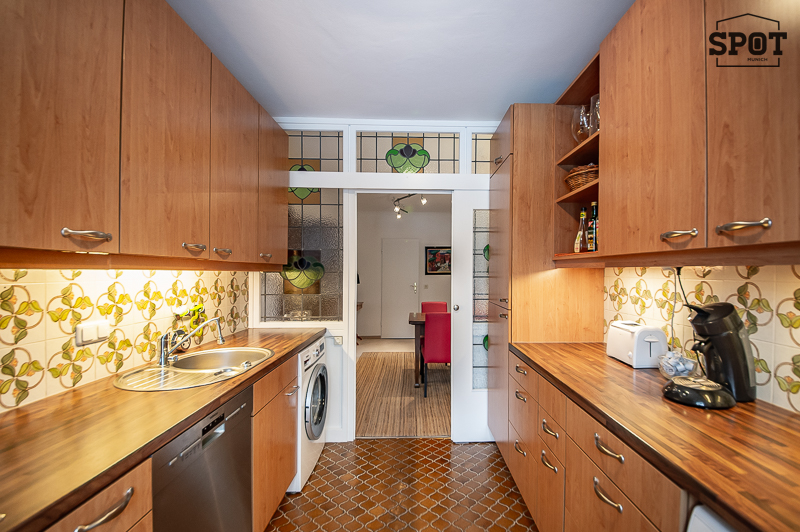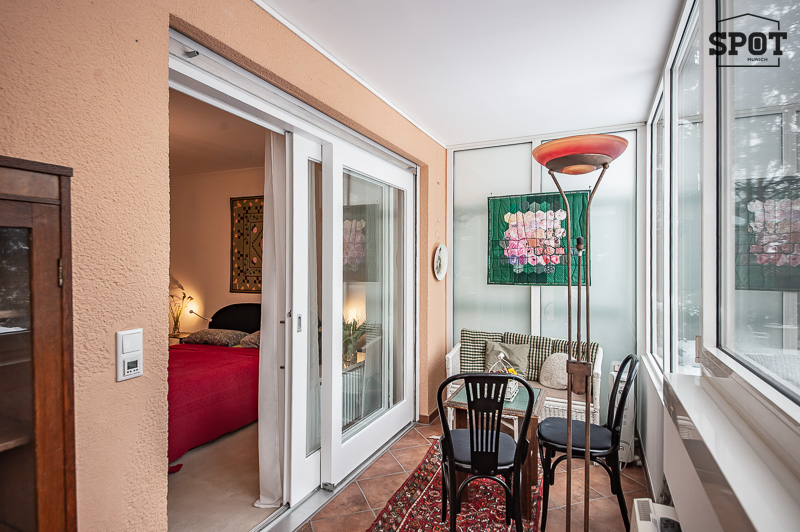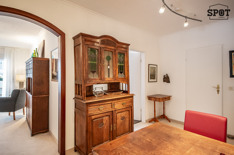 Die gemütliche 3 Zimmer Wohnung mit Wintergarten, Balkon und großem Garten befindet sich in Harlaching im Hochparterre eines gepflegten Mehrfamiliengebäudes (mit Lift). Sie ist ruhig zur Gartenseite gelegen und freundlich möbliert. Sie verfügt über drei Zimmer – einen Wohnbereich mit Zugang zum Balkon, ein Schlafzimmer mit angrenzendem Wintergarten und ein Gästezimmer (ebenfalls mit Zugang zum Balkon). Das Wohnzimmer ist mit zwei Sofas, Bücherregal, Schreibtisch mit Stuhl, Flat Screen TV, Tisch und Vitrine möbliert. Von hier hat man Zugang zum großen überdachten Balkon. Die separate Küche mit Türe zum Wintergarten bietet alles, was man täglich benötigt: Cerankochfeld mit Dunstabzug, Backofen, Geschirrspüler, Kühl- und Gefrierkombination, Waschmaschine und Trockner. Vom Wintergarten aus führt eine Treppe zum Garten. Der Essbereich grenzt an die Küche an und ist mit Esstisch mit 4 Stühlen und Vitrine möbliert. Das Schlafzimmer ist mit einem Doppelbett von 160 cm Breite, einem Kleiderschrank und einer Kommode ausgestattet. Ein weiterer Kleiderschrank mit ausreichend Stauraum befindet sich im Vorraum. Vom Schlafzimmer aus kann der Wintergarten zum ruhigen Garten betreten werden. Das moderne und zeitlos geflieste Badezimmer bietet eine Dusche, Badewanne, Spiegelschrank, Waschbecken mit Unterbau und WC. Gäste WC vorhanden. Im Eingangsbereich findet sich eine Garderobe und ein praktischer Schrank für Haushaltsgeräte und Schuhe. Eine Abstellkammer schafft zusätzlichen Stauraum. Ein eigener, in der Tiefgarage unter dem Gebäude gelegener PKW-Einzelstellplatz gehört zur Wohnung. english This cozy 3-room apartment with a conservatory, balcony, and large garden is located in Harlaching on the mezzanine floor of a well-maintained apartment building (with elevator). It is quietly situated on the garden side and is nicely furnished. It has three rooms—a living area with access to the balcony, a bedroom with adjoining conservatory, and a guest room (also with access to the balcony). The living room is furnished with two sofas, a bookshelf, a desk with chair, a flat-screen TV, a table, and a display cabinet. From here, you have access to the large covered balcony. The separate kitchen with a door to the conservatory offers everything you need on a daily basis: ceramic hob with extractor fan, oven, dishwasher, fridge-freezer, washing machine, and dryer. A staircase leads from the conservatory to the garden. The dining area is adjacent to the kitchen and is furnished with a dining table with 4 chairs and a display cabinet. The bedroom is equipped with a 160 cm wide double bed, a wardrobe, and a chest of drawers. Another wardrobe with ample storage space is located in the entrance hall. From the bedroom, you can access the conservatory leading to the quiet garden. The modern and timelessly tiled bathroom offers a shower, bathtub, mirror cabinet, washbasin with vanity unit, and toilet. Guest toilet available. In the entrance area, there is a coat rack and a practical cupboard for household appliances and shoes. A storage room provides additional storage space. The apartment has its own single parking space in the underground garage beneath the building.