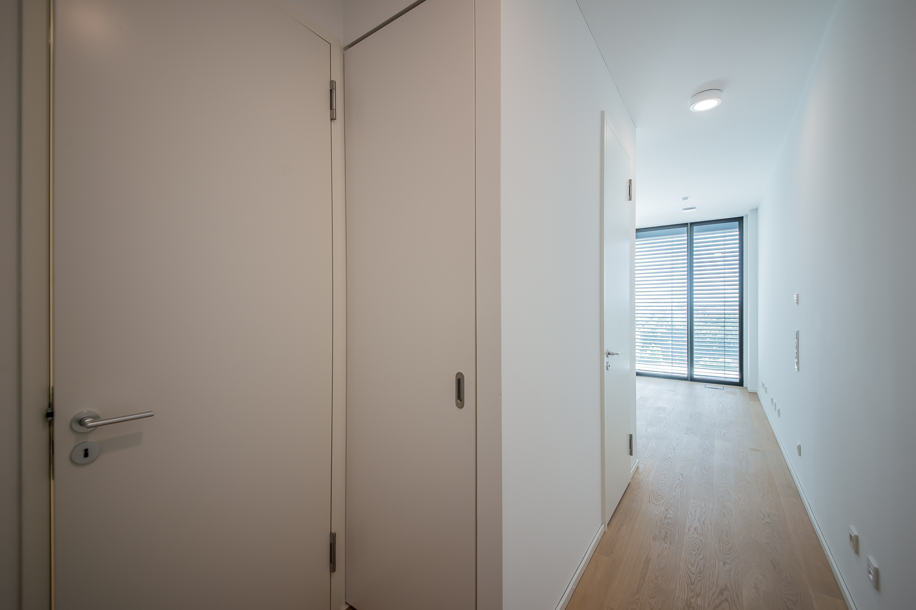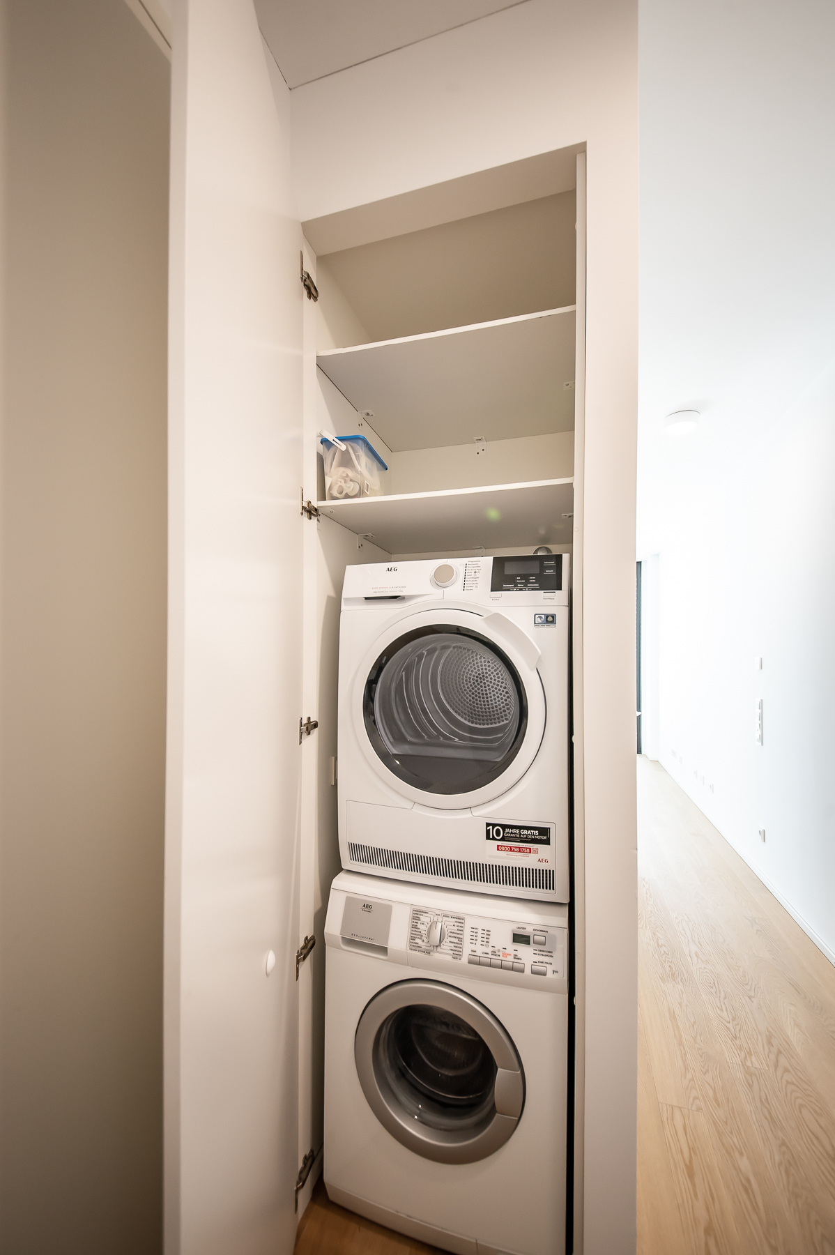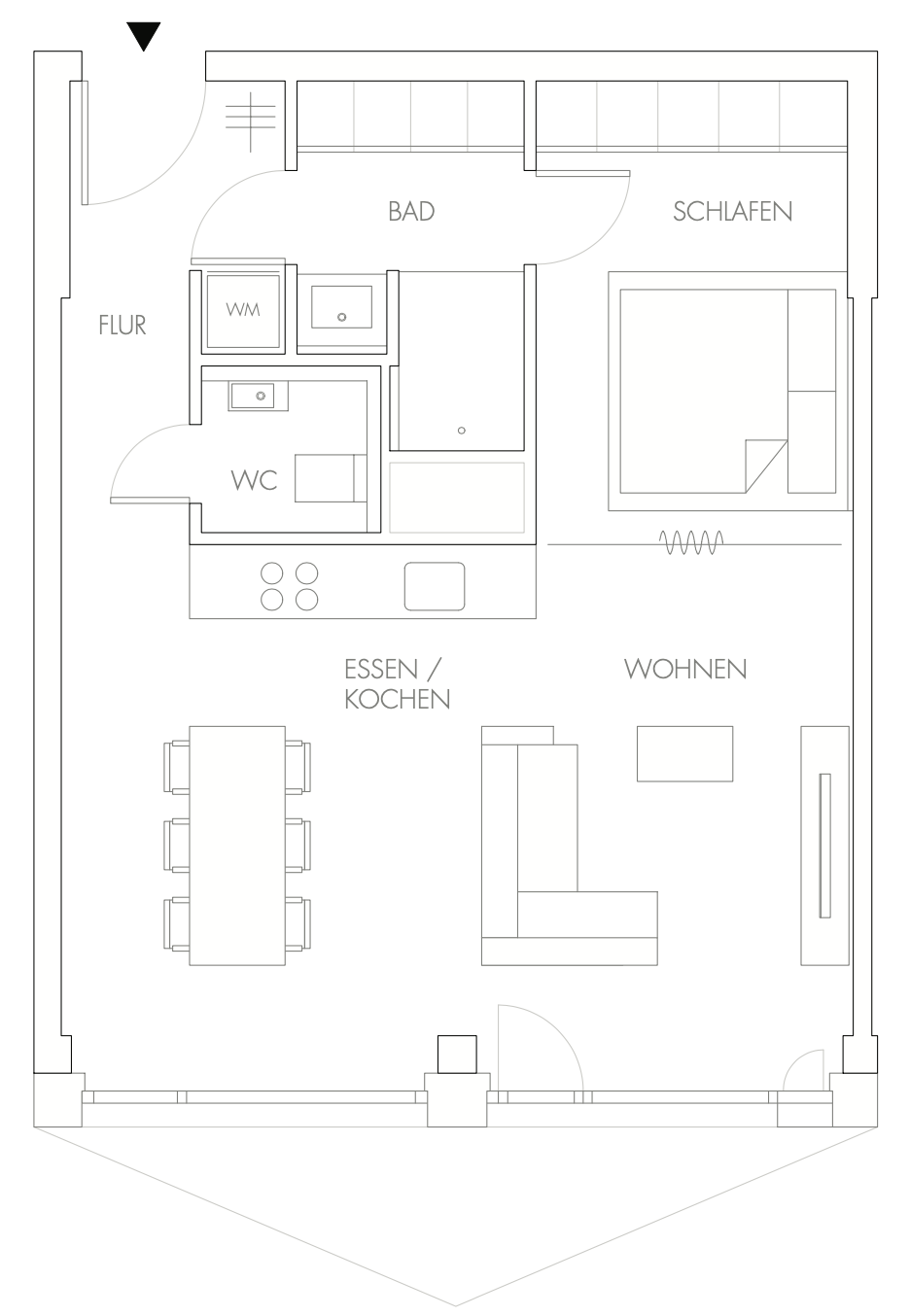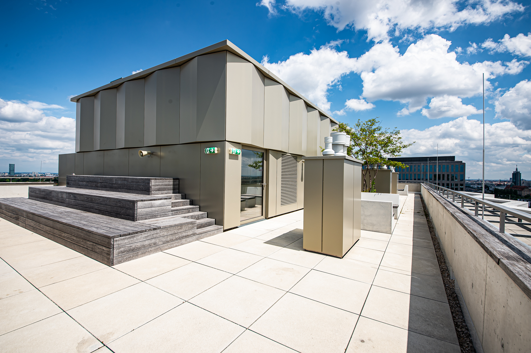 Moderne coole 1,5-Zimmer Wohnung im FRIENDS-Tower in München-Nymphenburg. Die beiden FRIENDS-Tower sind Wohn-Neubauten aus dem Jahre 2016 in Nähe des Hirschgartens. In Tower 1 befindet sich der Concierge-Service, ein Fitnessraum sowie eine Küchen-Lounge.